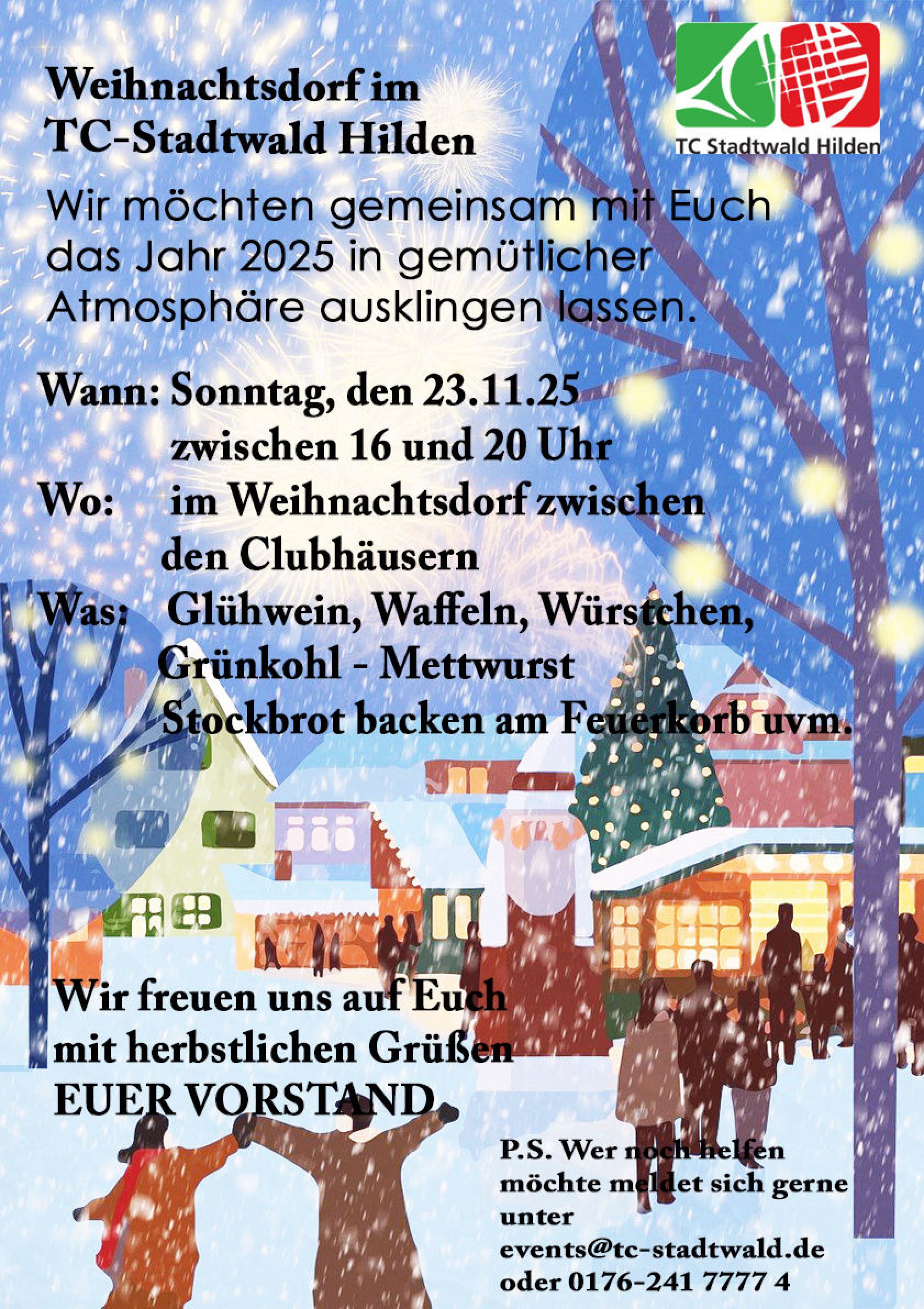 Auch in diesem Jahr möchten wir wieder mit Euch das Jahr gemütlich ausklingen lassen und laden dafür herzlich zum Weihnachtsdorf am 23.11.2025 auf unsere Anlage ein.